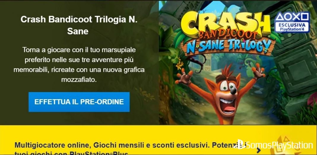 Pues bien, hoy la web Wccftech ha afirmado que tuvieron acceso a una promoción digital de PlayStation 4 para Italia donde se resaltan los próximos títulos exclusivos para la consola, uno de ellos es Crash Bandicoot: N. Sane Trilogy y en la imagen del juego está sobrepuesta la leyenda: “exclusivo PlayStation 4”.