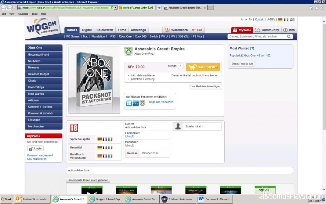 World of Games, una tienda online establecida en Suiza, ha publicado el artículo en cuestión para Xbox One con un lanzamiento fijado para octubre de 2017. Recordamos que la popular franquicia no ha tenido ningún gran lanzamiento durante 2016, dando un descanso a los jugadores y a la saga que parecía haber agotado las ideas.